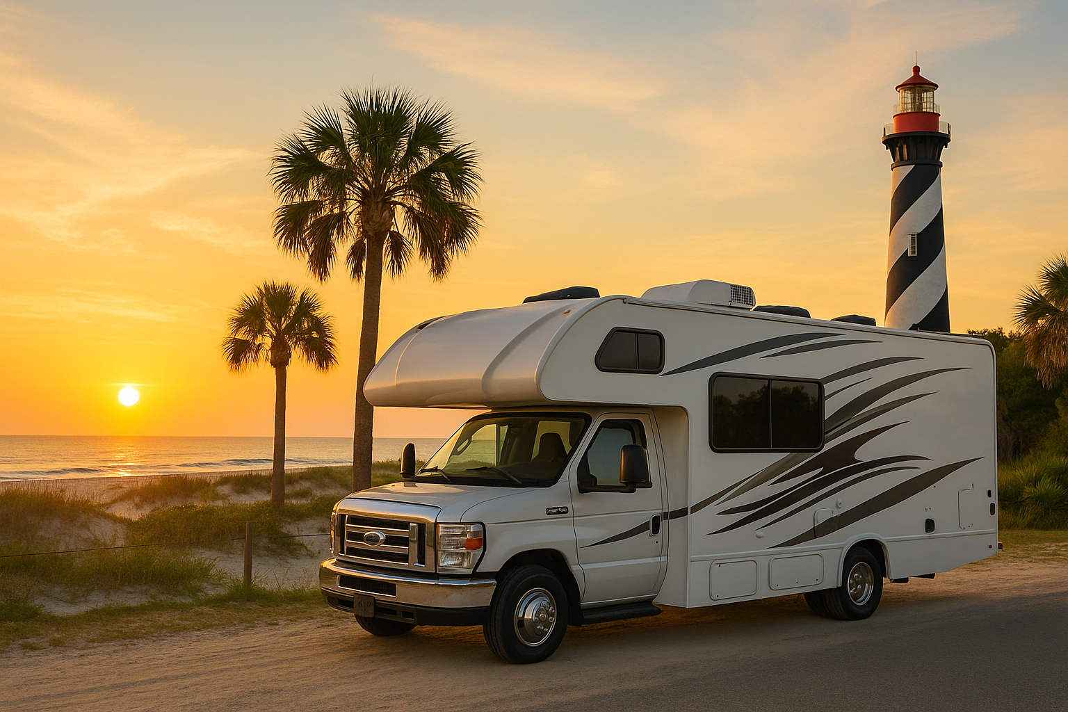 Renting an RV in St. Augustine, Florida lets you enjoy America’s oldest city along with beautiful beaches and RV-friendly campgrounds. Stay at Anastasia State Park for shaded sites just steps from the ocean, or head to Faver-Dykes State Park for quiet riverside camping and kayaking. History lovers can explore downtown St. Augustine’s cobblestone streets, Castillo de San Marcos, and unique local attractions. Many campgrounds in the area offer full hookups, pull-through sites, and easy access to both historic landmarks and sandy shores. With Fireside RV Rental, your RV can be delivered, set up, and ready for your coastal Florida adventure.