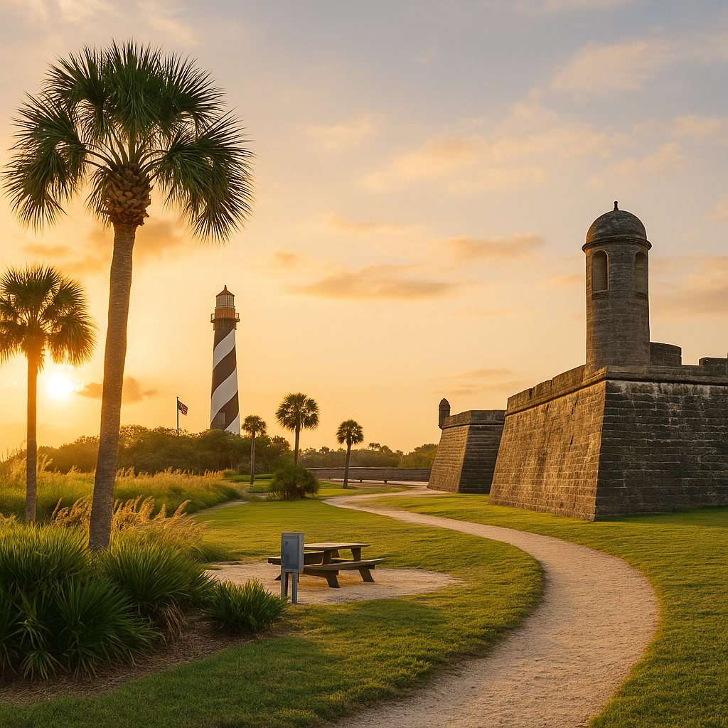 Renting an RV in St. Augustine, Florida lets you enjoy America’s oldest city along with beautiful beaches and RV-friendly campgrounds. Stay at Anastasia State Park for shaded sites just steps from the ocean, or head to Faver-Dykes State Park for quiet riverside camping and kayaking. History lovers can explore downtown St. Augustine’s cobblestone streets, Castillo de San Marcos, and unique local attractions. Many campgrounds in the area offer full hookups, pull-through sites, and easy access to both historic landmarks and sandy shores. With Fireside RV Rental, your RV can be delivered, set up, and ready for your coastal Florida adventure.